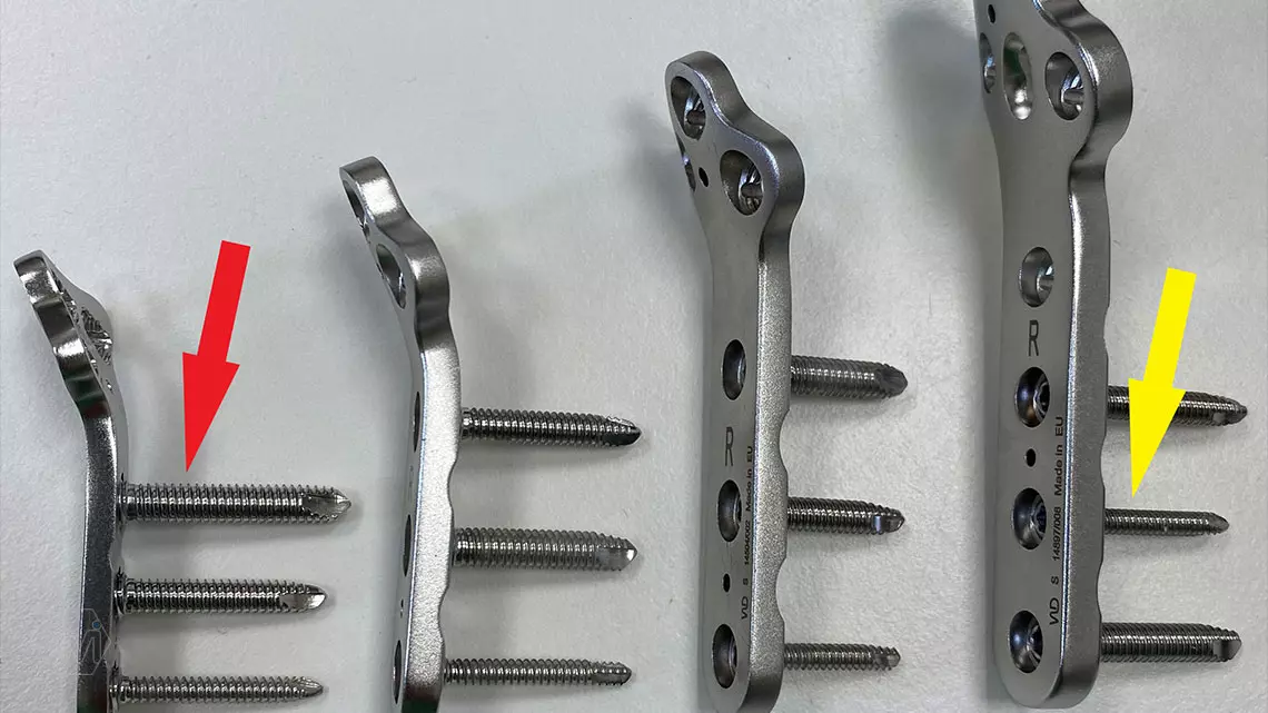 You can even put a 4.0 screw (red arrow) in the small plate and a 2.7 screw (yellow arrow) in the large plate!