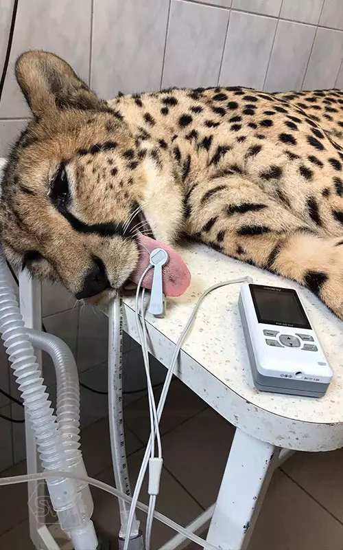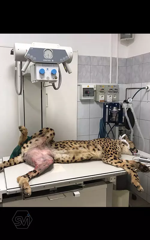 Cheetah (Acinonyx jubatus) in the surgery room