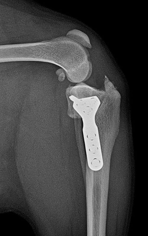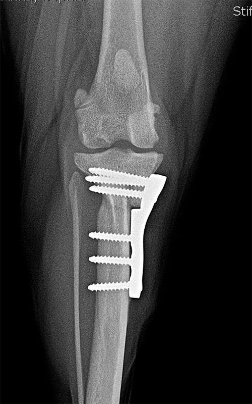 The picture shows a 2-month follow-up of the case in our previous post, with limp-free limb use and adequate bone healing.