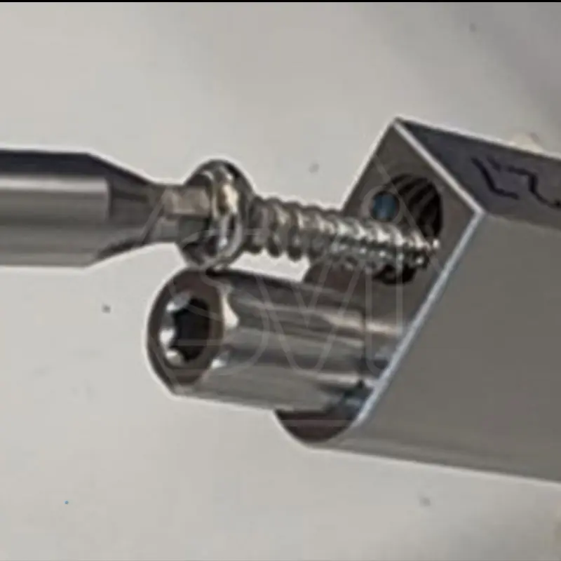 - The screw can be inserted in place of the drill guide sleeve. It can be used with a self-tapping, AO screw.